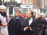 A lively street theatre re-enactment of a